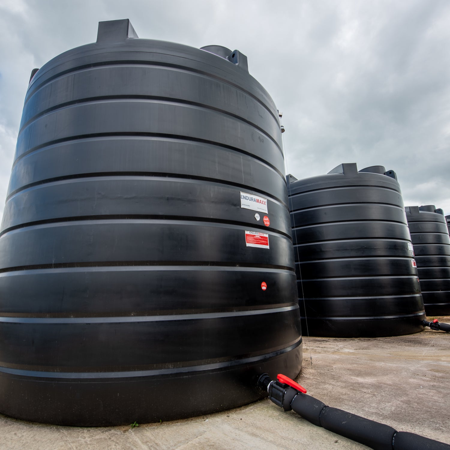 AMS Online supplied eight 30,000-litre Enduramaxx tanks, giving them a total onsite capacity of 240,000 litres. The tanks were installed above ground and linked together to allow balanced filling and draw-off across the system.
